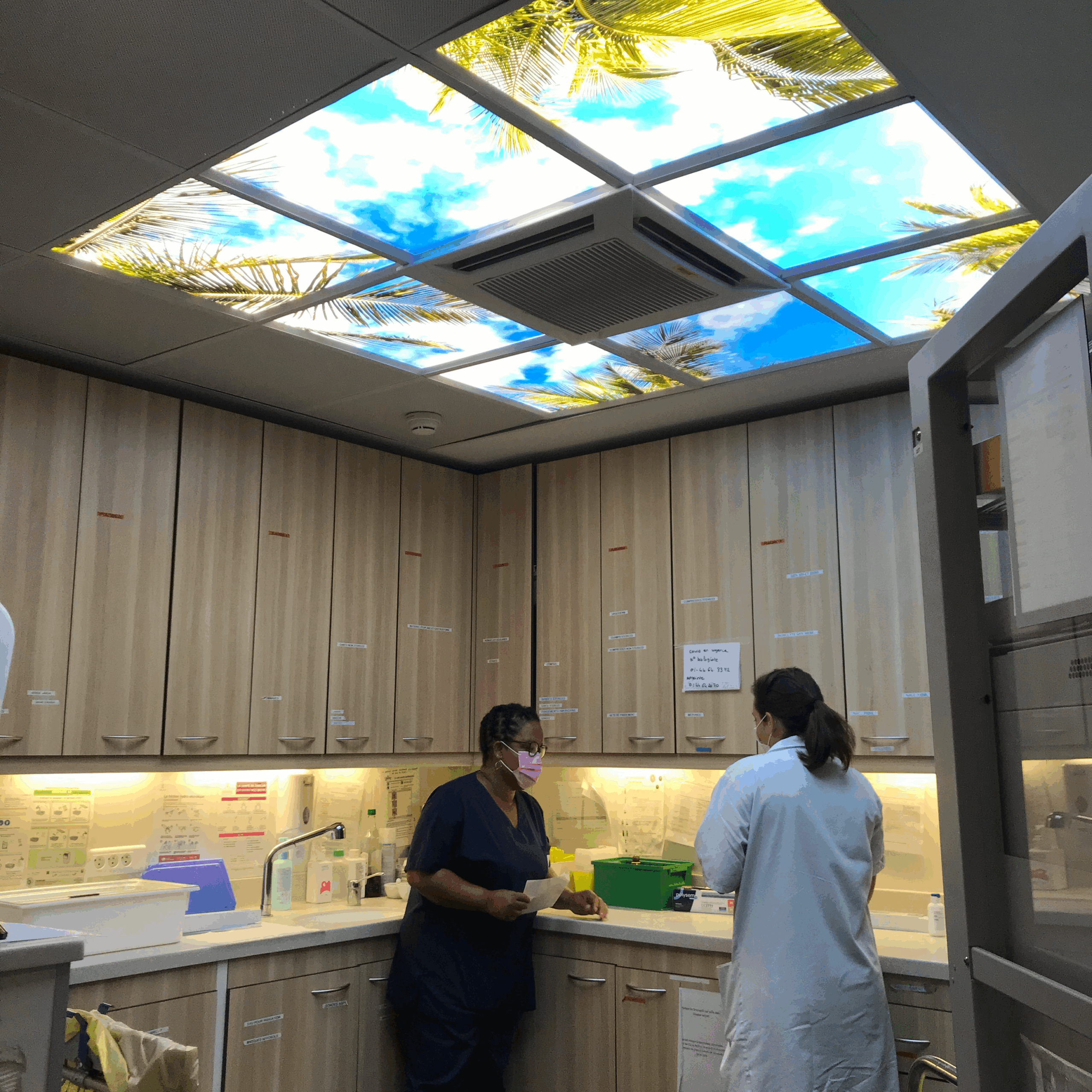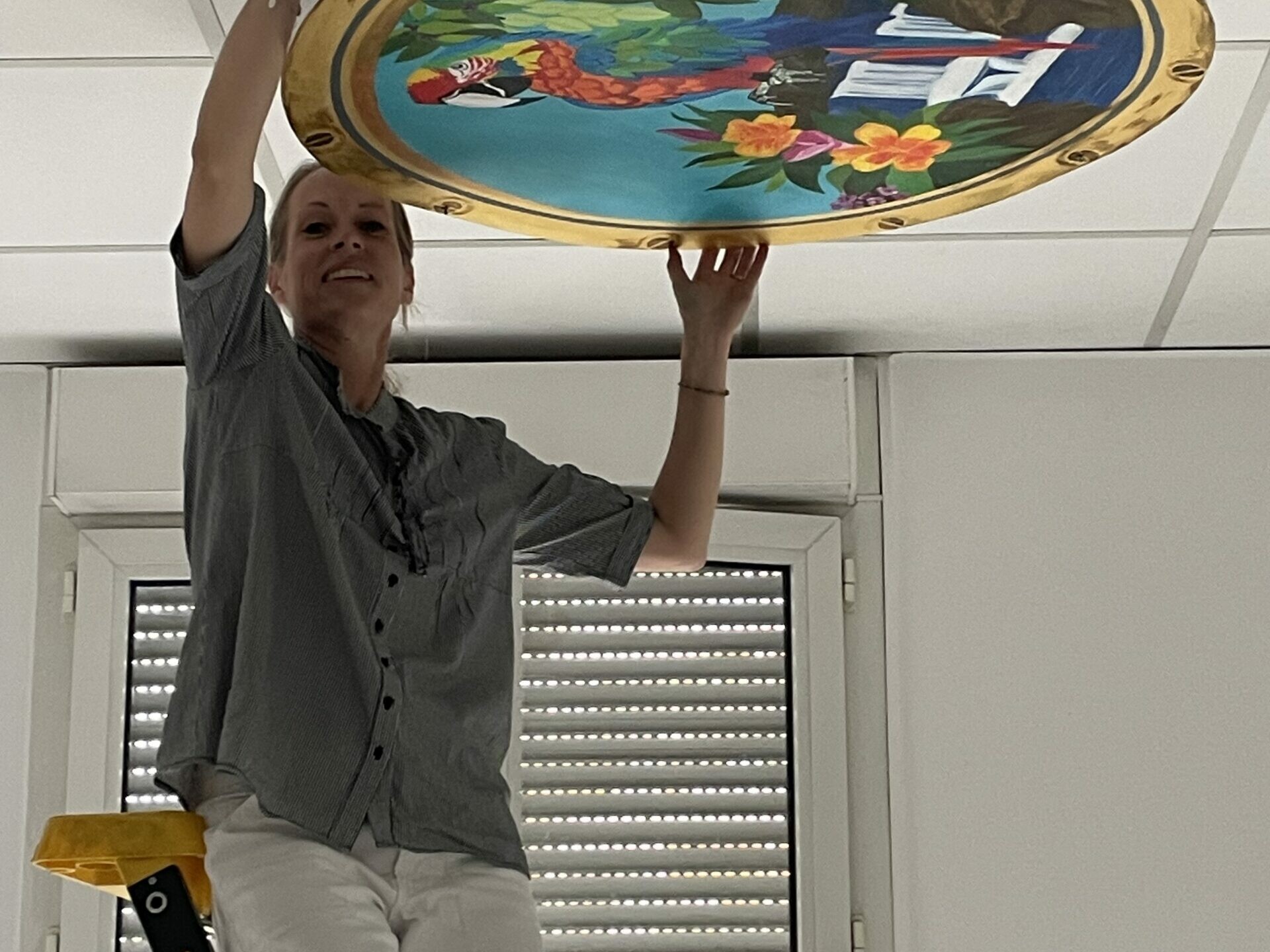 Bénévole au sein de Mdms à Necker depuis 2019, cette belle association m’a permis de concrétiser mon projet de cœur de peintre en décors : l’installation de hublots « trompe l’œil » au plafond des chambres des enfants hospitalisés, notamment à l’hôpital Trousseau. Ces ouvertures vers l’extérieur offrent un moment d’évasion, de distraction et d’apaisement aux jeunes parfois isolés.
